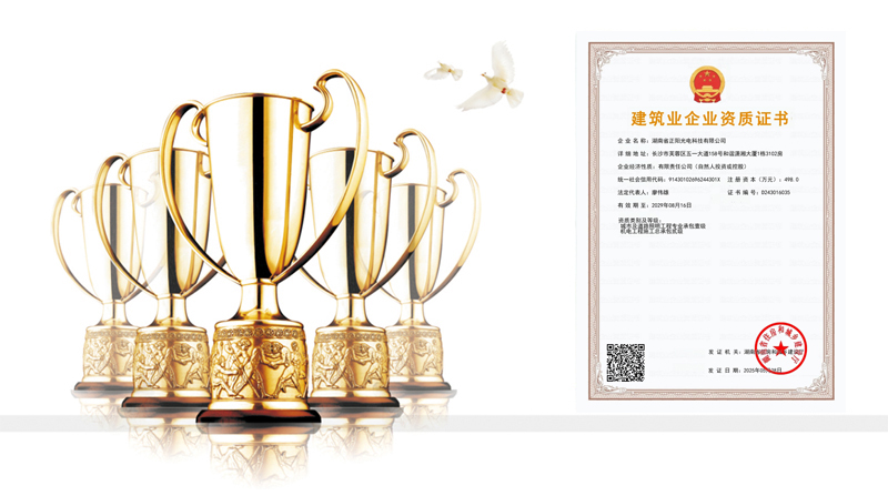 湖南省正陽光電科技有限公司是一家從事亮化工程及大型燈光藝術的設計、制作、安裝和維護于一體的專業化公司。公司資質齊全、管理嚴謹、技術先進、實力雄厚,取得了城市及道路照明工程專業承包壹級資質、照明工程設計專項甲級資質、機電工程施工總承包貳級資質、施工勞務等資質、國家高新技術企業、國家“重質量·守誠信”示范企業。